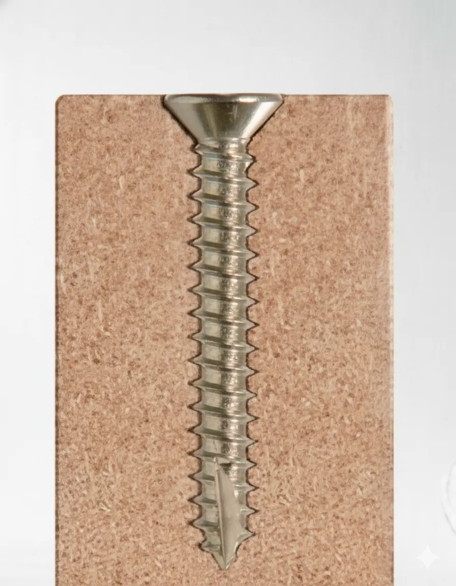 Mal Agarre de Tornillos: Los tornillos tienden a soltarse con el tiempo, especialmente si se montan y desmontan, ya que las virutas no ofrecen una sujeción firme.
